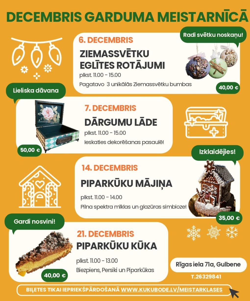 Katram dalībniekam tiks līdzņemšanai viena, sevis pagatavota, mājiņa, kuru varēsi skrubināt līdz pat Ziemassvētkiem vai pat Jaunajam gadam!