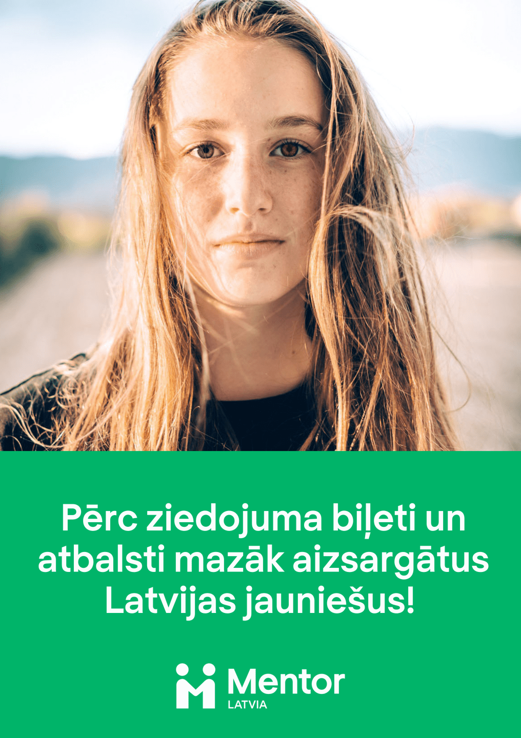 Nopērkot biļeti, Tu sniegsi lielākas iespējas jauniešu atbalsta biedrībai "Mentor Latvia" palīdzēt mentorprogrammas jauniešiem, kuriem pietrūkst ģimenes atbalsta.
