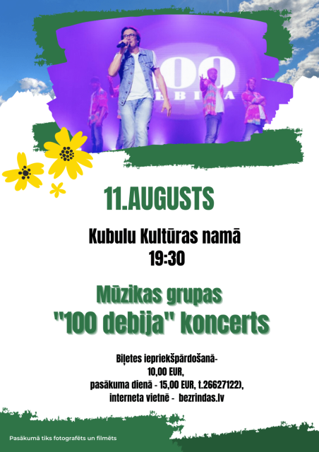 11. augustā 100 DEBIJAS koncerts Kubulos