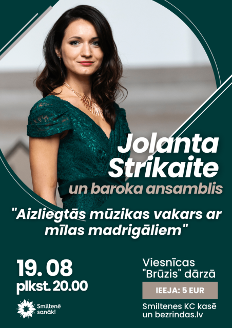 19. augustā "Aizliegtās mūzikas vakars ar mīlas madregāliem". Jolantas Strikaites un baroka ansambļa koncerts Smiltenē