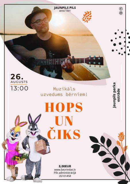 26. augustā Muzikāls uzvedums bērniem "Hops un Čiks" Jaunpilī