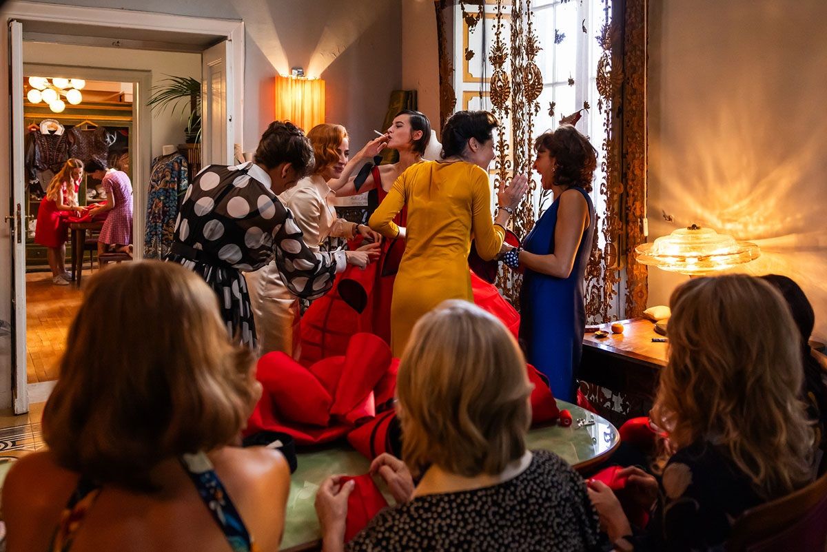 Filmā atdzīvojas divi paralēli stāsti – vakariņas, uz kurām režisors uzaicinājis savas topošās filmas aktrises, un divu māsu, modes ateljē īpašnieču Albertas un Gabrielas stāsts, kas skatītāju aizved uz pagājušā gadsimta 70. gadu Romu. Māsas saņem svarīgu pasūtījumu, jāgatavo tērpi grandiozai filmai, kuras darbība norisinās 18. gadsimtā. Filmas kostīmu mākslinieks ir neticami prasīgs, turklāt modes ateljē dāmām jātiek galā arī ar divu primadonnu sāncensību, kuru ceļi nedrīkst krustoties.