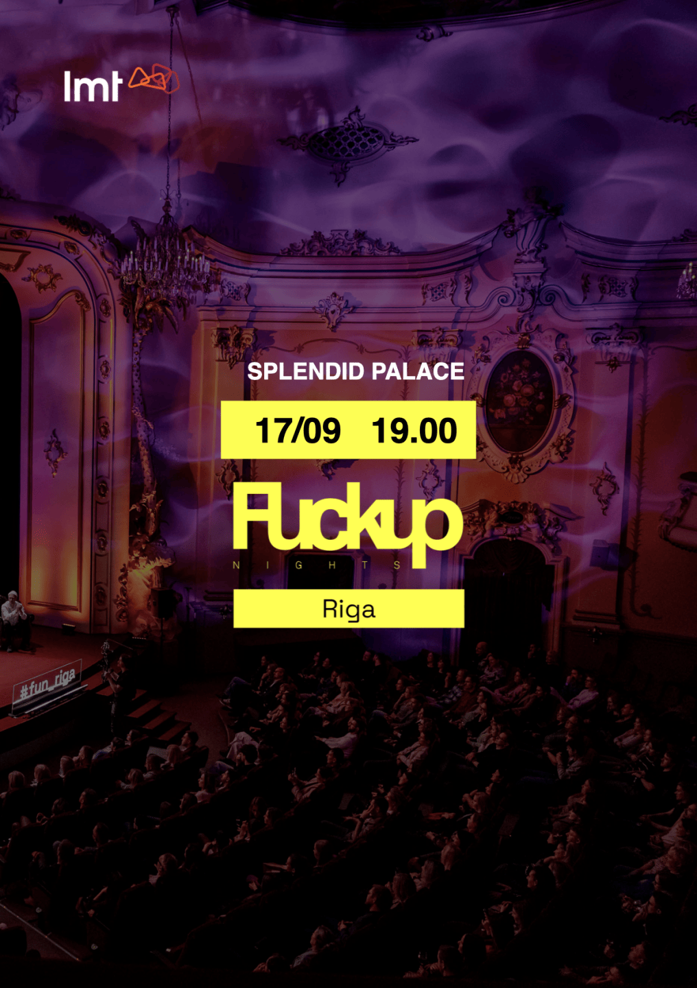 FuckUp Nights (FUN) Riga 34. pasākumā - 17.septembrī, plkst. 19:00, Splendid Palce, Elizabetes ielā 61, Rīgā.