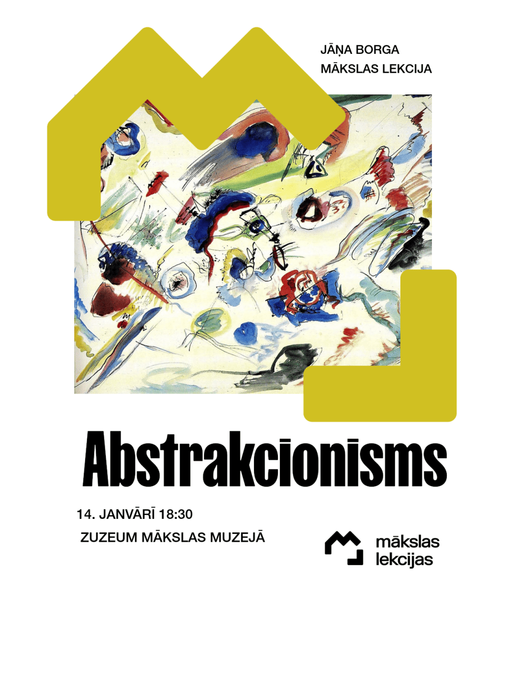14.janvāra lekcijā mākslas zinātnieks Jānis Borgs sniegs padziļinātu ieskatu abstrakcionismā, atklājot šī mākslas virziena saknes, attīstības gaitu un ietekmi uz mūsdienu kultūru. Vasilijs Kandinskis, kuru dēvē par abstraktās mākslas pamatlicēju, Kazimirs Maļēvičs ar skatījumu, kas mainīja priekšstatus par mākslu, izmantojot tīras formas un krāsas, kā arī Marks Rotko, Džeksons Polloks, Piets Mondrians kas ir tikai daži no māksliniekiem, kuru darbi tiek aplūkoti lekcijā, pievēršoties plašākai abstrakcionisma daudzveidībai. Iztirzāsim šī mākslas virziena izcelsmi, nozīmi un attīstību, ne tikai iepazīstot tā būtiskākos autorus, bet arī mēģinot izprast abstrakcionisma pamatideju — kā māksla atsakās no attēlojuma, lai kļūtu par domāšanas, sajūtu un uztveres formu.
